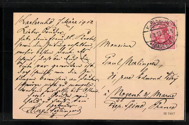 alte Ansichtskarte, gelaufen 1913, Eckknick unten li., guter Zustand