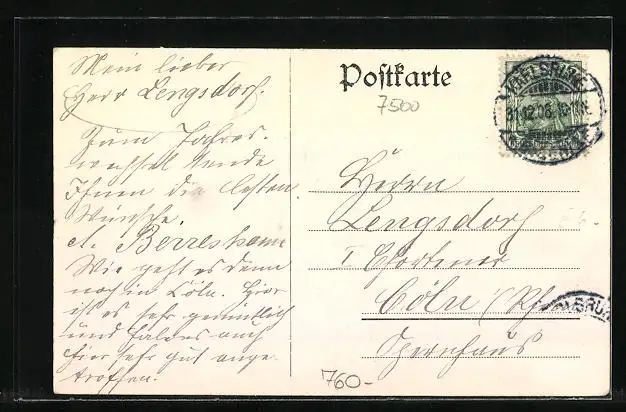 alte Ansichtskarte, gelaufen 1908, Stempelspur, guter Zustand