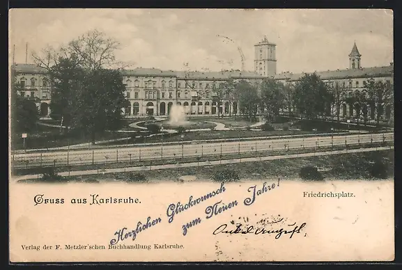AK Karlsruhe, auf dem Friedrichsplatz