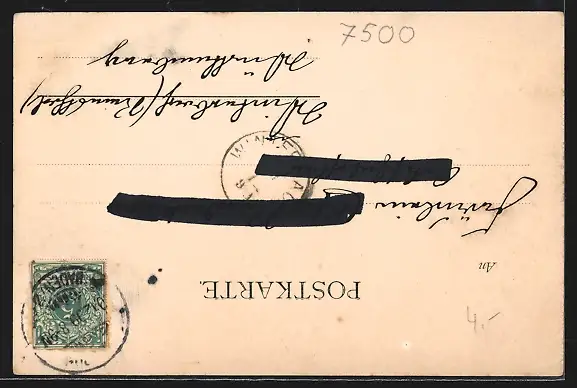 gelaufen 1899, kleiner Eckknick links unten, guter Zustand
