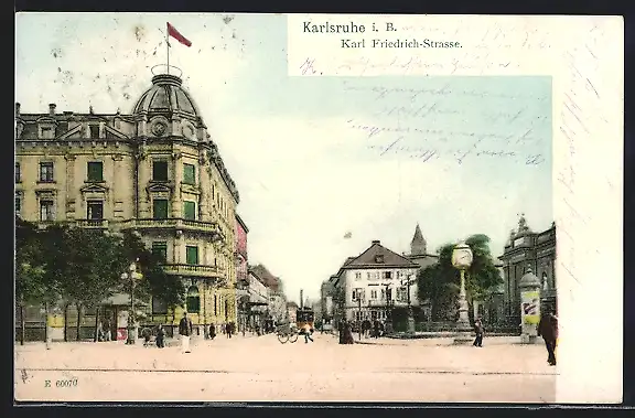 AK Karlsruhe i. B., Ansicht der Karl Friedrich-Strasse