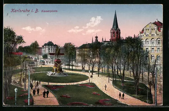 AK Karlsruhe i. B., Blick auf den Kaiserplatz mit Statue