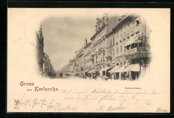 AK Karlsruhe i. B., Blick in die Kaiserstrasse