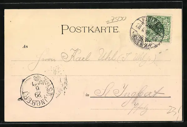 alte Ansichtskarte, gelaufen 1898, guter Zustand