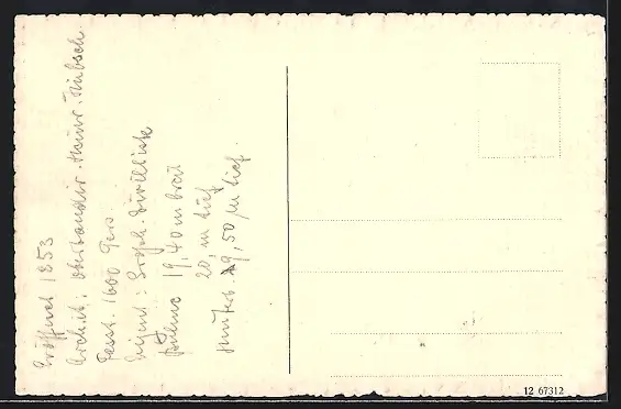 Personenbezogene Daten auf der Rückseite der Karte wurden durch blauen Textmarker unkenntlich gemacht. Die blauen Stellen sind auf die Vorderseite durchgeweicht und wirken sich negativ auf das Postkartenfoto aus