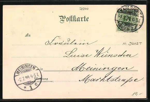 alte Ansichtskarte, gelaufen 1899, guter Zustand