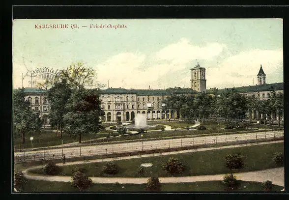 AK Karlsruhe i. B., Friedrichsplatz aus der Vogelschau