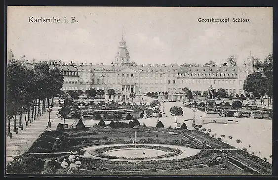 AK Karlsruhe i. B., Grossherzogl. Schloss mit Anlage