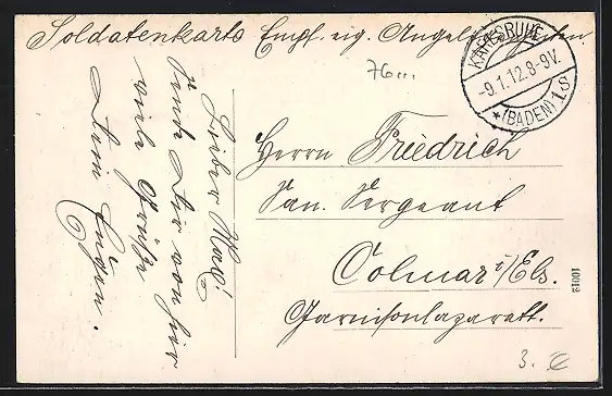 alte Ansichtskarte, gelaufen 1912, guter Zustand