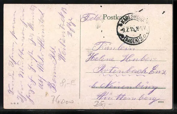 alte Ansichtskarte, gelaufen 1915 als Feldpost, guter Zustand