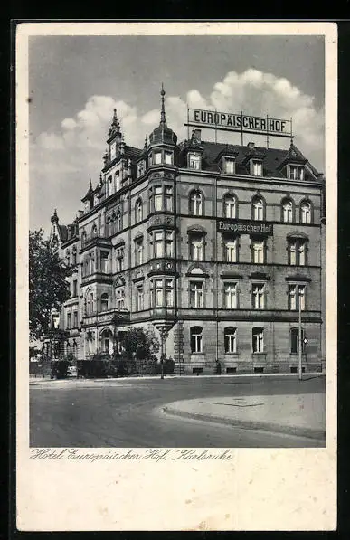 AK Karlsruhe i. B., Hotel Europäischer Hof von F. Schroff