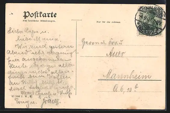alte Ansichtskarte, gelaufen 1907, Eckknick li. oben, Stempelspur, guter Zustand