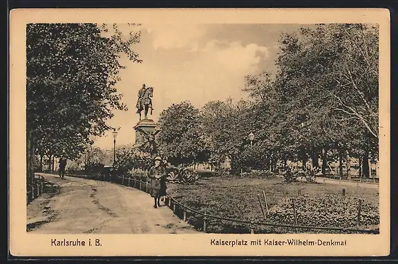 AK Karlsruhe i. B., Kaiserplatz mit Kaiser-Wilhelm-Denkmal