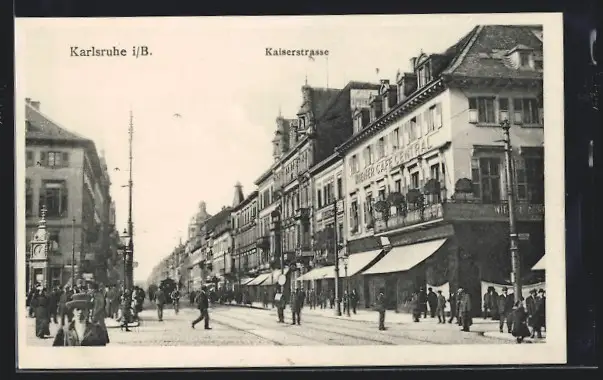 AK Karlsruhe i. B., Kaiserstrasse mit Wiener Café Central