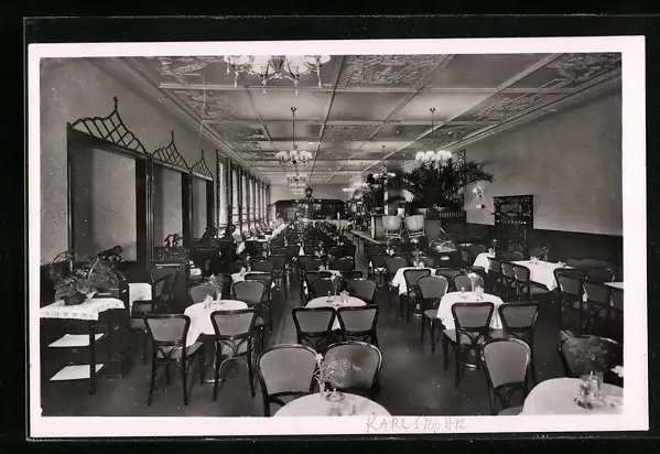 AK Karlsruhe i. B., Konzert-Cafe Museum, im Gastraum
