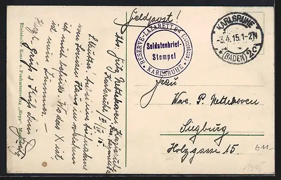 alte Ansichtskarte, gelaufen 1915, guter Zustand