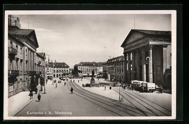 AK Karlsruhe i. B., Marktplatz mit Strassenbahn