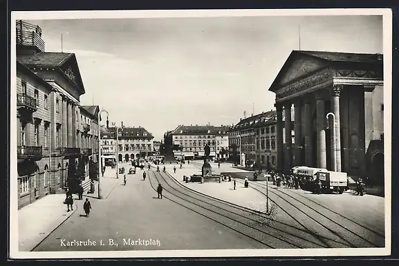 AK Karlsruhe i. B., Marktplatz mit Strassenbahn