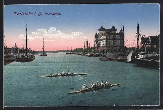 AK Karlsruhe i. B., Partie am Rheinhafen