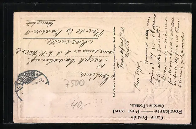 alte Ansichtskarte, gelaufen, Briefmarke entfernt, rückseitig Oberflächenschaden, guter Zustand