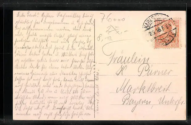 gelaufen 1916, leichte Bugspur li. oben, sonst guter Zustand