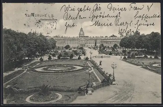 AK Karlsruhe i. B., Residenzschloss mit Strassenpartie