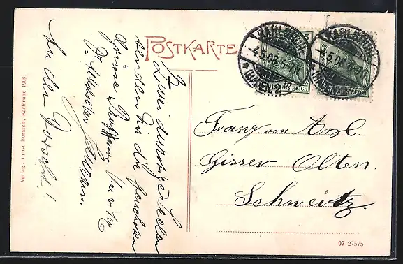 alte Ansichtskarte, gelaufen 1908, Stempelspur, guter Zustand