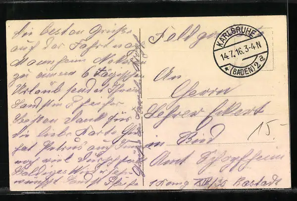 gelaufen 1916 als Feldpost, Stempelspur, guter Zustand