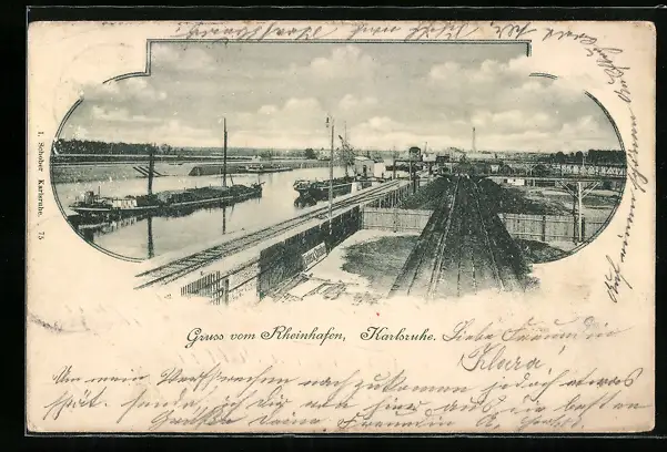 AK Karlsruhe i. B., Rheinhafen aus der Vogelschau