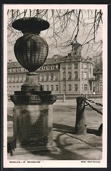 AK Karlsruhe i. B., Schlosskirche mit Denkmal