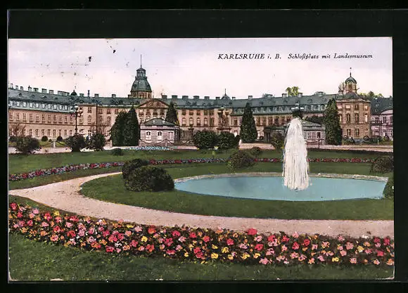 AK Karlsruhe i. B., Schlossplatz mit Landesmuseum
