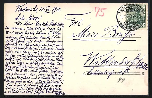 alte Ansichtskarte, gelaufen 1910, guter Zustand