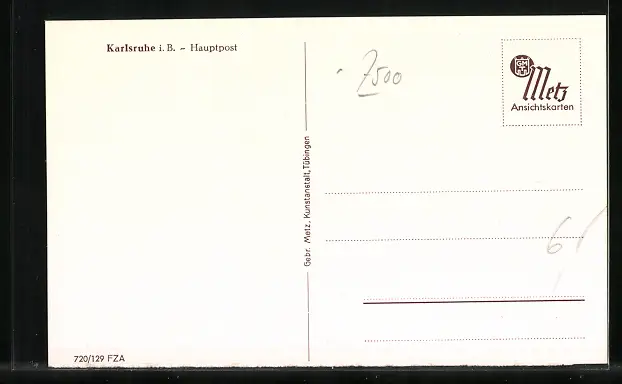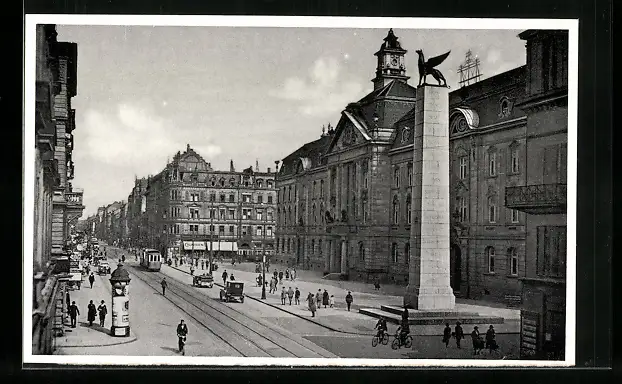 AK Karlsruhe i. B., Strassenbahn vor der Hauptpost