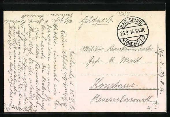 alte Ansichtskarte, gelaufen 1916 als Feldpost, guter Zustand