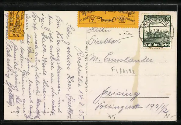 gelaufen 1935, rückseitig Klebe- und Papierreste, guter Zustand