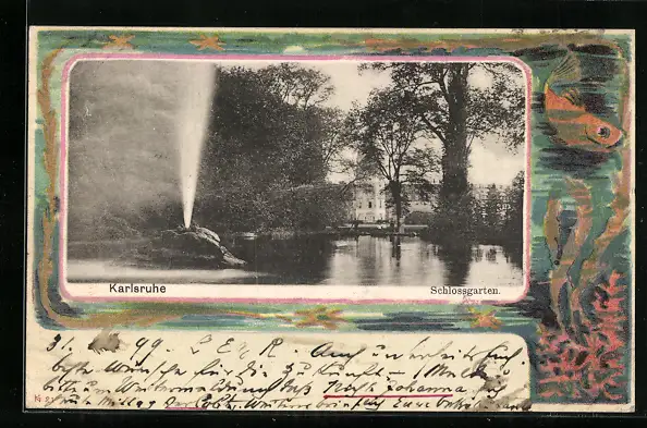AK Karlsruhe i. B., Wasserkunst im Schlossgarten