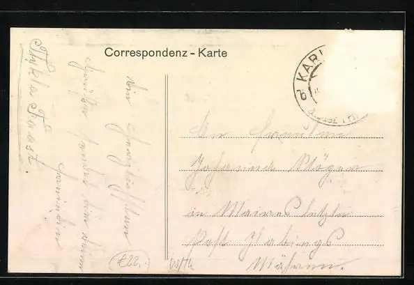 alte Ansichtskarte, gelaufen, Briefmarke entfernt, rückseitig Oberflächenschaden, guter Zustand