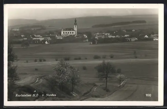 AK Karlstetten, Ortsansicht mit Kirche von Norden