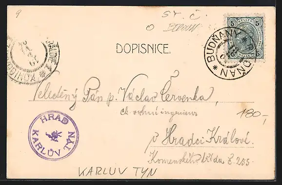 AK Karluv Tyn, Strassenpartie mit Schloss