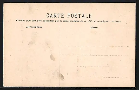 Personenbezogene Daten auf der Rückseite der Karte wurden durch blauen Textmarker unkenntlich gemacht. Die blauen Stellen sind auf die Vorderseite durchgeweicht und wirken sich negativ auf das Postkartenfoto aus