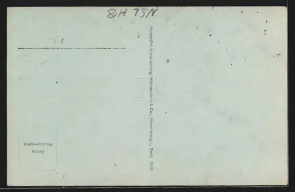 Personenbezogene Daten auf der Rückseite der Karte wurden durch blauen Textmarker unkenntlich gemacht. Die blauen Stellen sind auf die Vorderseite durchgeweicht und wirken sich negativ auf das Postkartenfoto aus