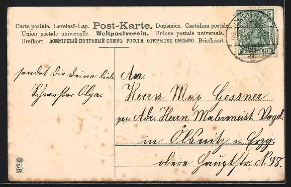 alte Ansichtskarte, gelaufen 1907, guter Zustand