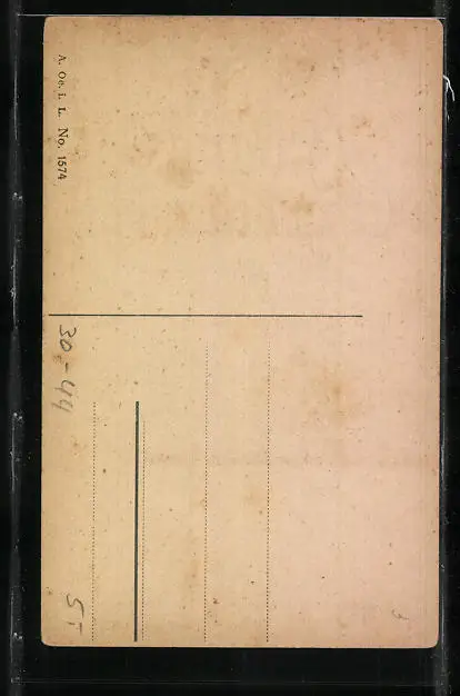 Personenbezogene Daten auf der Rückseite der Karte wurden durch blauen Textmarker unkenntlich gemacht. Die blauen Stellen sind auf die Vorderseite durchgeweicht und wirken sich negativ auf das Postkartenfoto aus