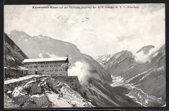 AK Karwendel-Haus, Gebirgspartie an der Hochalm