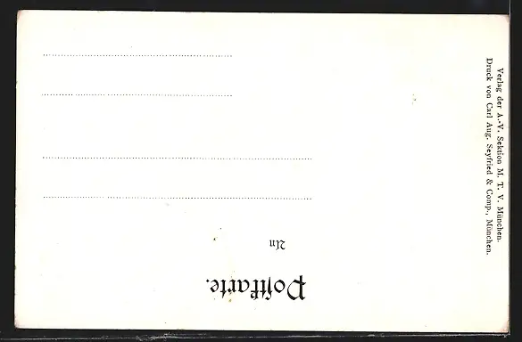 Personenbezogene Daten auf der Rückseite der Karte wurden durch blauen Textmarker unkenntlich gemacht. Die blauen Stellen sind auf die Vorderseite durchgeweicht und wirken sich negativ auf das Postkartenfoto aus