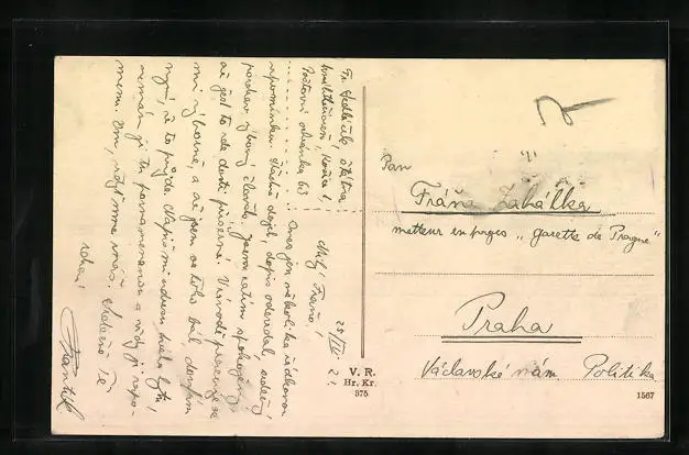 Personenbezogene Daten auf der Rückseite der Karte wurden durch blauen Textmarker unkenntlich gemacht. Die blauen Stellen sind auf die Vorderseite durchgeweicht und wirken sich negativ auf das Postkartenfoto aus