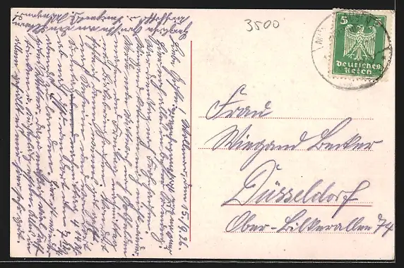 alte Ansichtskarte, gelaufen 1926, Bugspur rechts mittig, guter Zustand