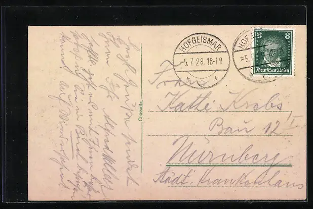 alte Ansichtskarte, gelaufen 1928, guter Zustand