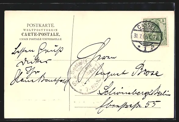alte Ansichtskarte, gelaufen 1905, guter Zustand