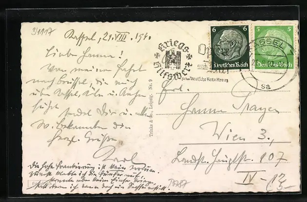 gelaufen 1940, Eckknick oben li., guter Zustand